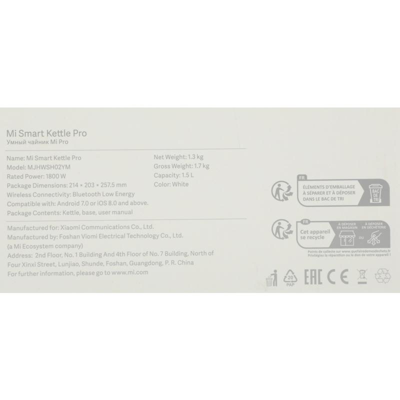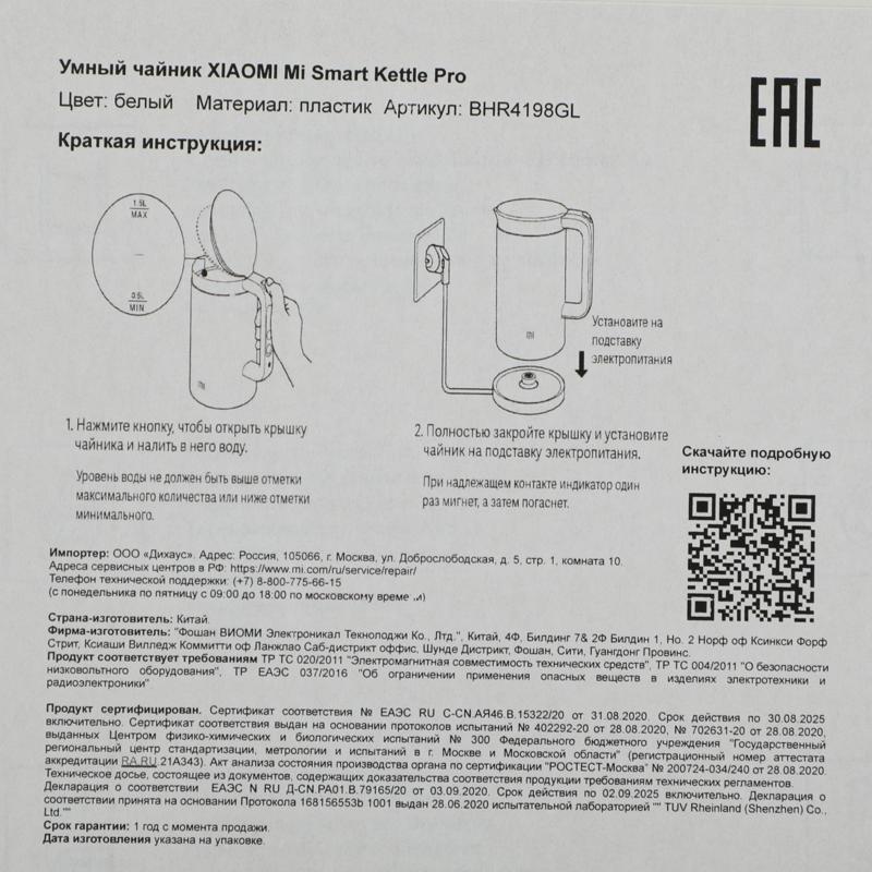 BHR4198GL Чайник Mi Smart Kettle Pro MJHWSH02YM WHITE XIAOMI