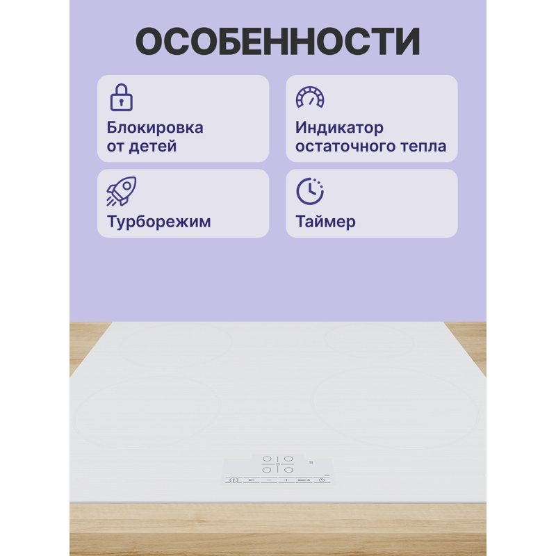 | Количество индукционных конфорок | 4 |