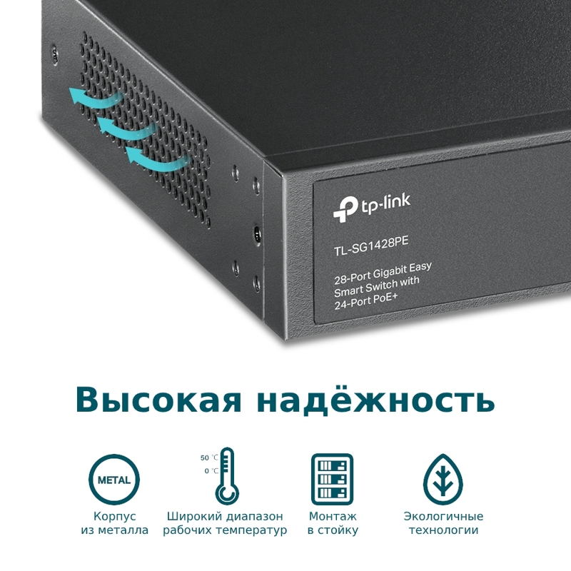 - TL-SG1428PE Коммутатор/ 28-Port Gigabit Easy Smart Switch with 24-Port PoE+