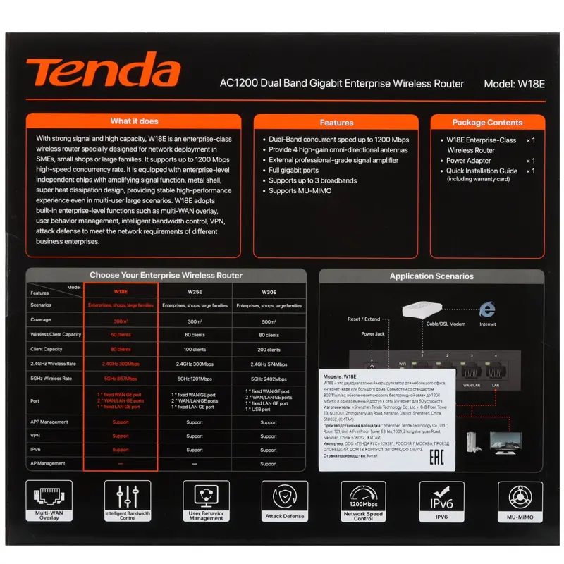 - W18E Маршрутизатор/ W18E AC1200 Dual Band Gigabit Enterprise Wireless Router