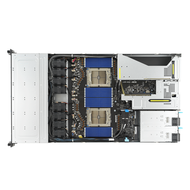 - 90SF02D1-M006Z0 Серверная платформа/ ASUS RS700A-E12-RS12U, 1U, 2 x LGA6096 400W, 24 x DDR5 4800, 12x 2.5" hsb NVMe, 1 x dual-slot GPU, 2 x M.2 2280, 3x PCIe Gen5 slots + 1 x internal RAID slot , 1 x Dual Port Intel X710-AT2 10G LAN, 1+1 2600W