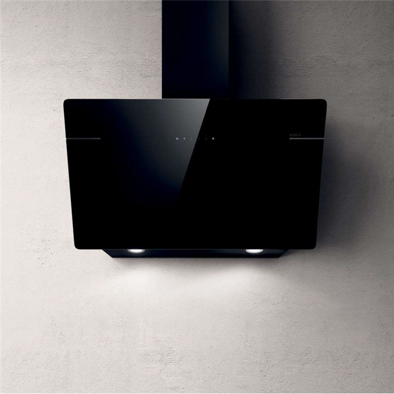 LESSENZABL/A/90-PRF0117374A Вытяжки ELICA/ Пристенная наклонная, 90 см, 1200 куб.м., сенсорное управление, черное стекло